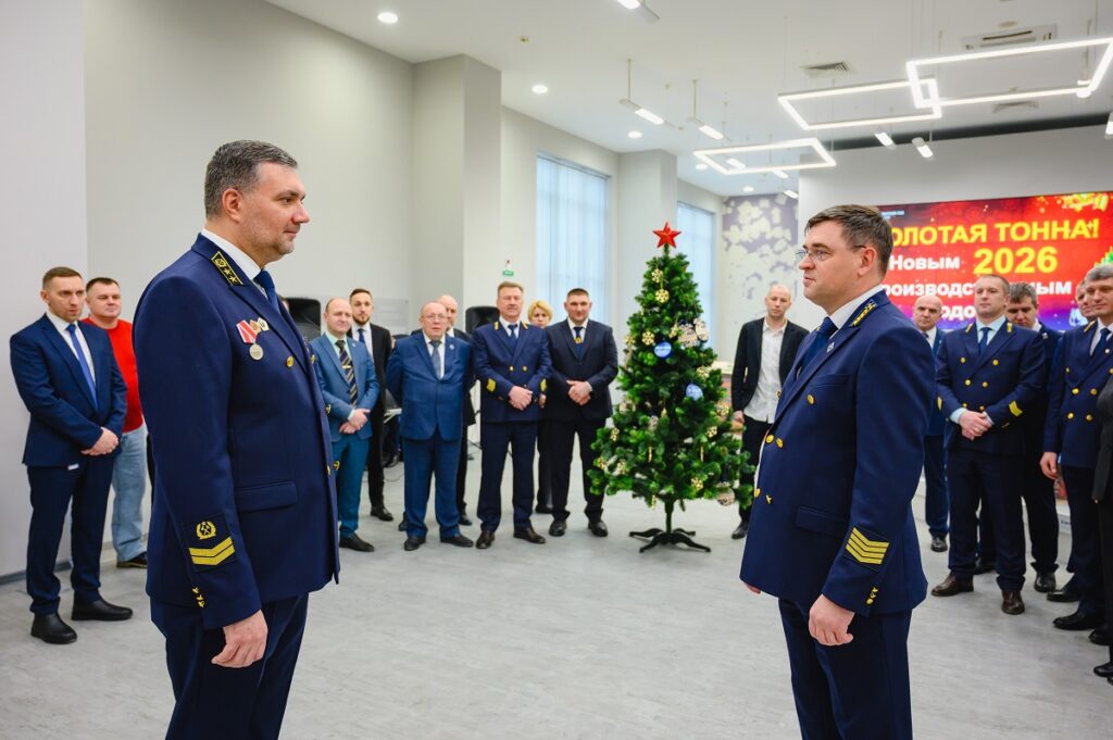 Генеральный директор ЕвроХим-ВолгаКалия Сергей Ширяев и технический директор Вадим Горностаев наградили сотрудников на торжественной церемонии празднования производственного Нового 2026 года «Золотая тонна».
