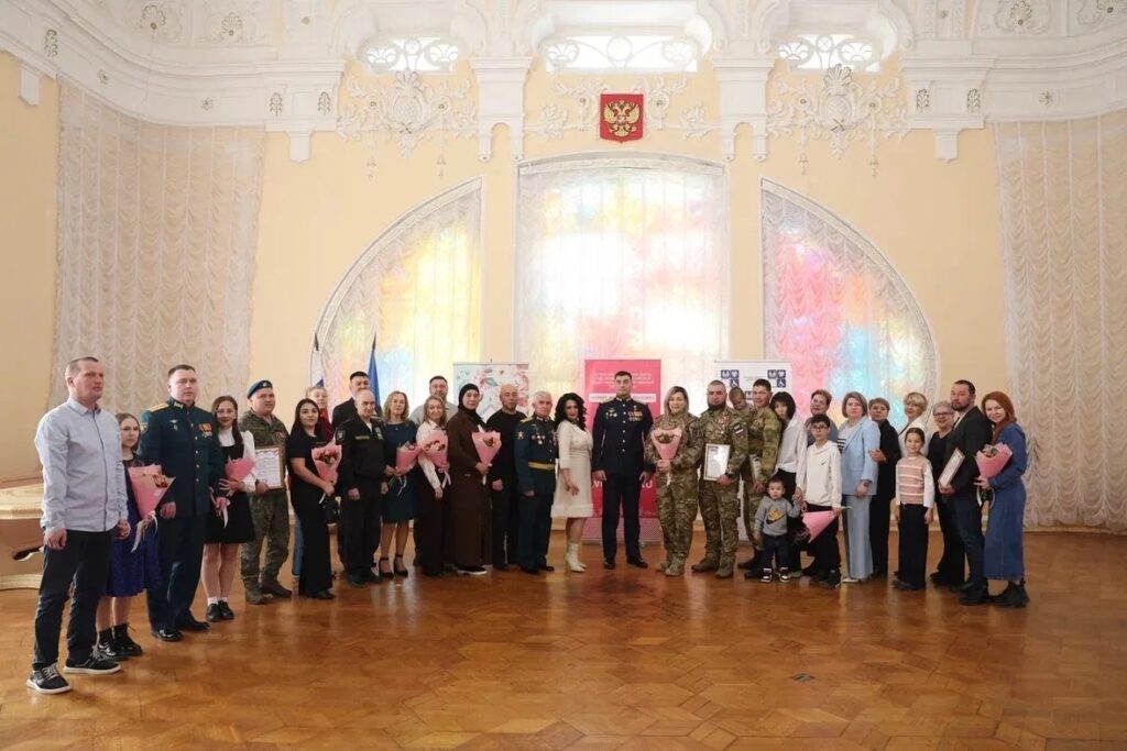 Среди награжденных — семья Синицыных, чья история тронула всех присутствующих. Ильмира, сотрудник фонда «Защитники Отечества» и волонтер, познакомилась со своим будущим мужем Виктором благодаря письму, которое ее дочь Милана написала бойцам на передовую. Послание попало именно к Виктору, и, приехав в отпуск, он решил найти девочку, чтобы поблагодарить. Судьба свела их снова, когда Ильмира доставляла гуманитарный груз. Сегодня они — большая и дружная семья, воспитывающая троих детей.