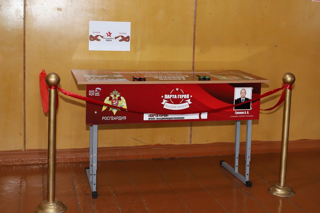 В сельской школе состоялась торжественная церемония открытия «Парты Героя» в память о выпускнике школы сотруднике ОМОН «Сталинград» Управления Росгвардии по Волгоградской области старшего сержанта полиции Алексея Гронова, погибшего в ходе выполнения задач специальной военной операции.